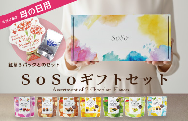 母の日限定!紅茶付きセット SoSo7種類の商品がそれぞれ1袋ずつ入っており